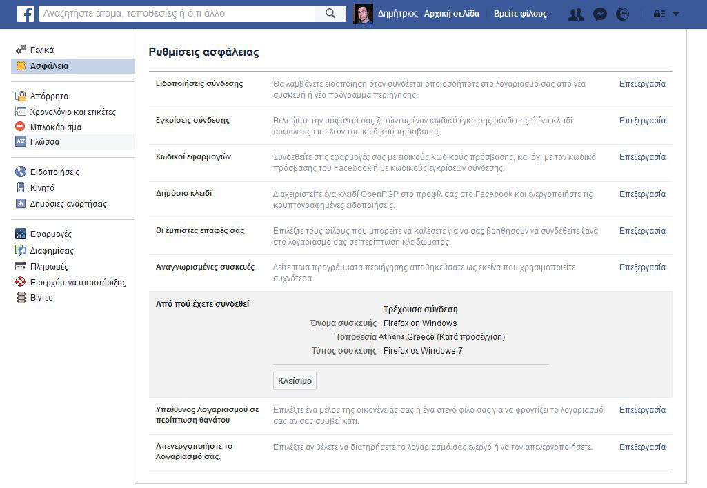 από πού έγινε η σύνδεση, αφού μπορείτε να δείτε την ημερομηνία, την ώρα,